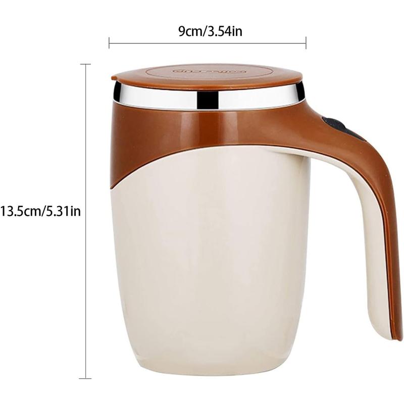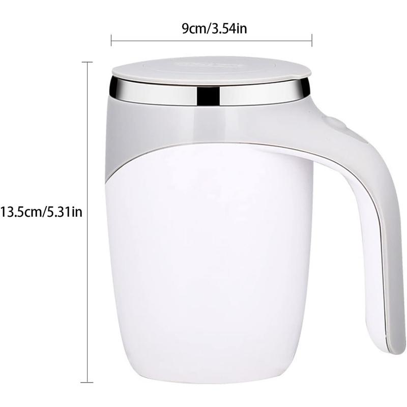 Automatic Magnetic Stirring Coffee Mug - Hands-Free Self-Stirring Cup for Coffee Tea & More Made of food-grade 304 stainless steel and ABS plastic, this electric mixing mug features a double-layer design to prevent heat loss and keep hands safe, with a non-slip bottom and silicone lid for durability. Equipped with a premium magnetic capsule and high-speed motor, it stirs drinks like coffee, tea, protein shakes, and hot chocolate uniformly with low noise, no need for spoons. Just add your drink, press the button once to start stirring and again to stop—easy to operate for all ages. The magnetic capsule is detachable, making it easy to clean with water (avoid dishwasher or soaking). It’s lightweight and portable, perfect for home, office, travel, picnics, and makes a great gift for holidays like Christmas, Father’s Day, Mother’s Day. Enjoy hassle-free, evenly mixed hot drinks anytime, anywhere with this self-stirring mug that also helps dissipate heat quickly while stirring.