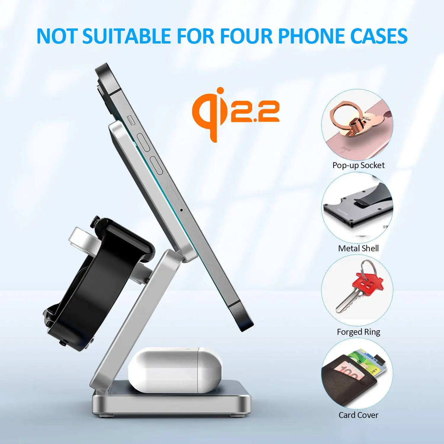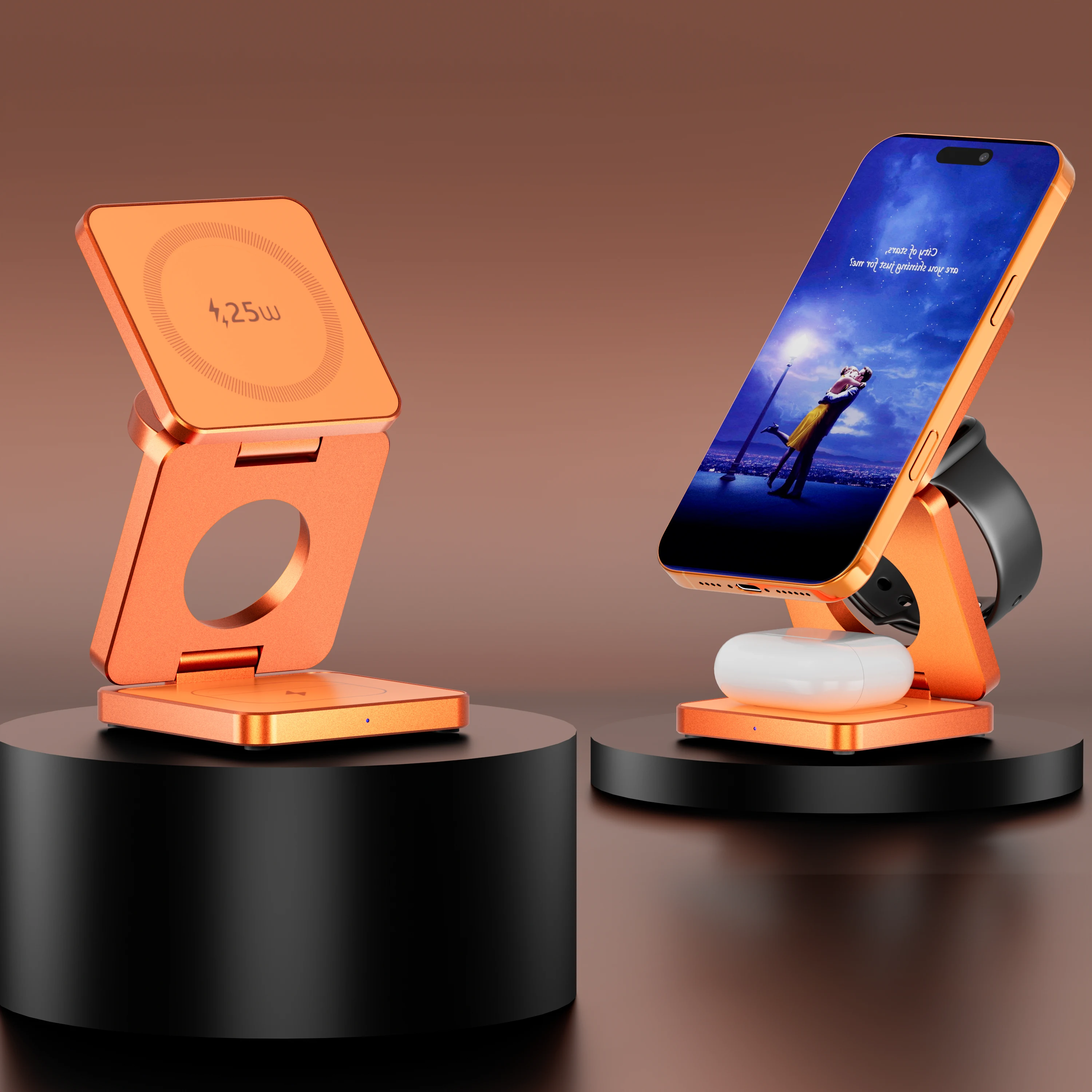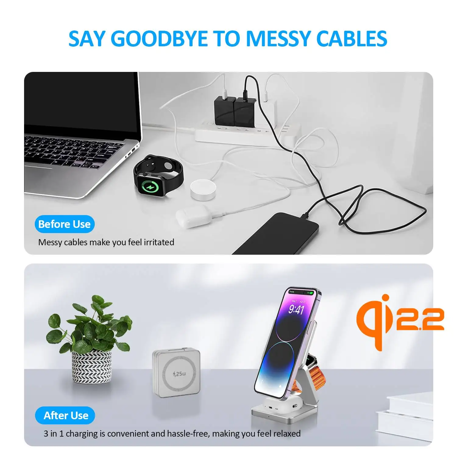 Qi1/Qi2.2 Foldable 3-in-1 Magnetic Wireless Charging Station for iPhone 12~17 Series AirPods iWatch Portable Travel Charger